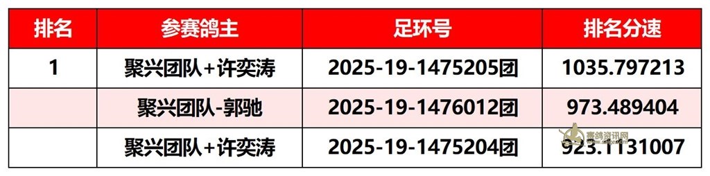 廣東汕頭市順翔俱樂(lè)部2025年秋季南北四關(guān)鴿王賽正四關(guān)成績(jī)