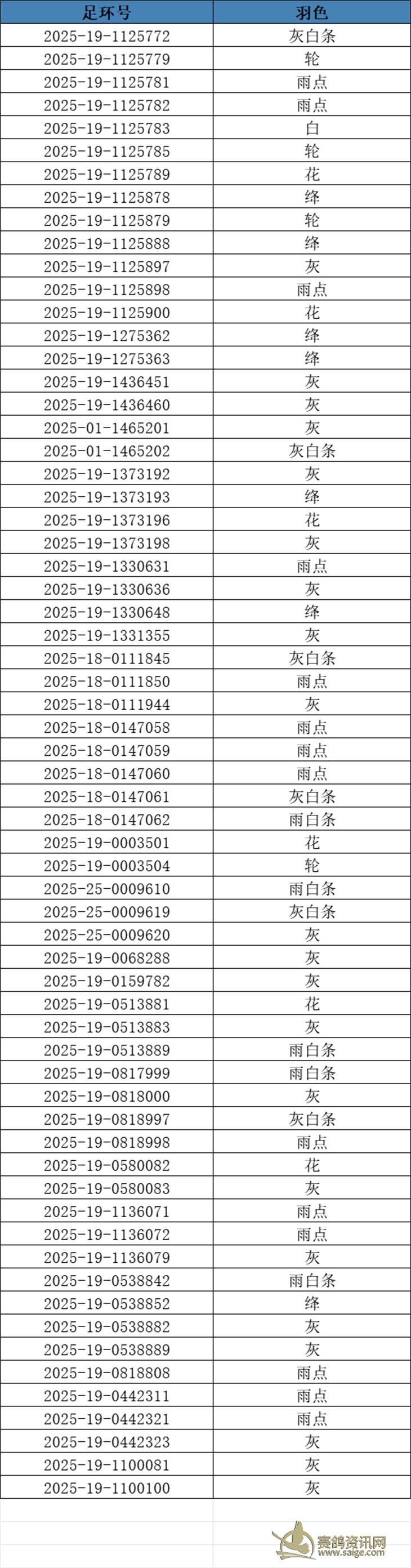 2025年廣東恒通秋棚放棄參賽賽鴿名單(已確定)