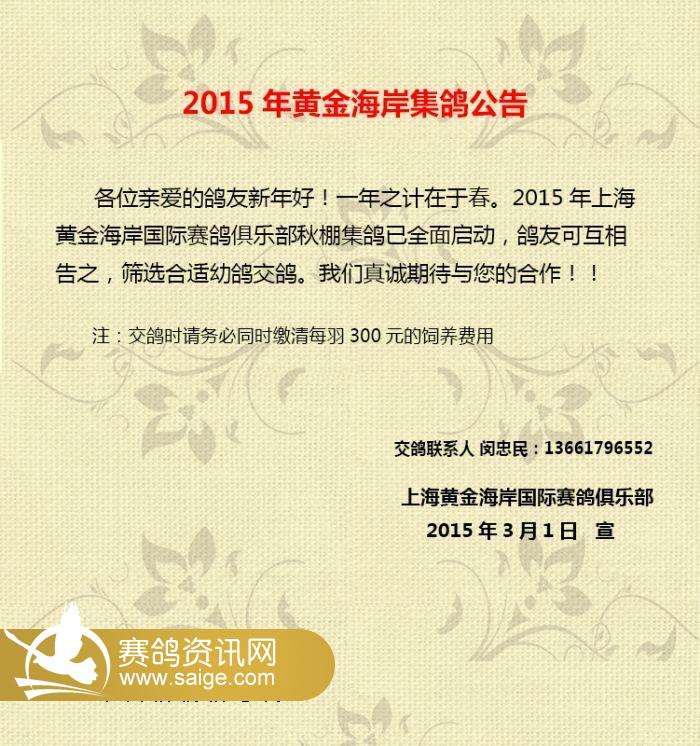 上海黃金海岸國際賽鴿俱樂部 新年祝賀