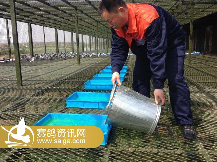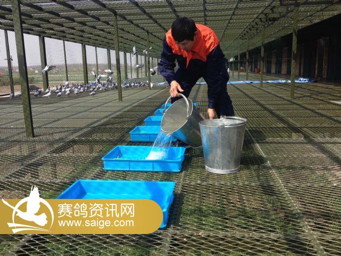 工作人員認(rèn)真的加水,控制水溫,讓水溫保持在20度左右,可不能讓可愛的帥鴿們受涼。