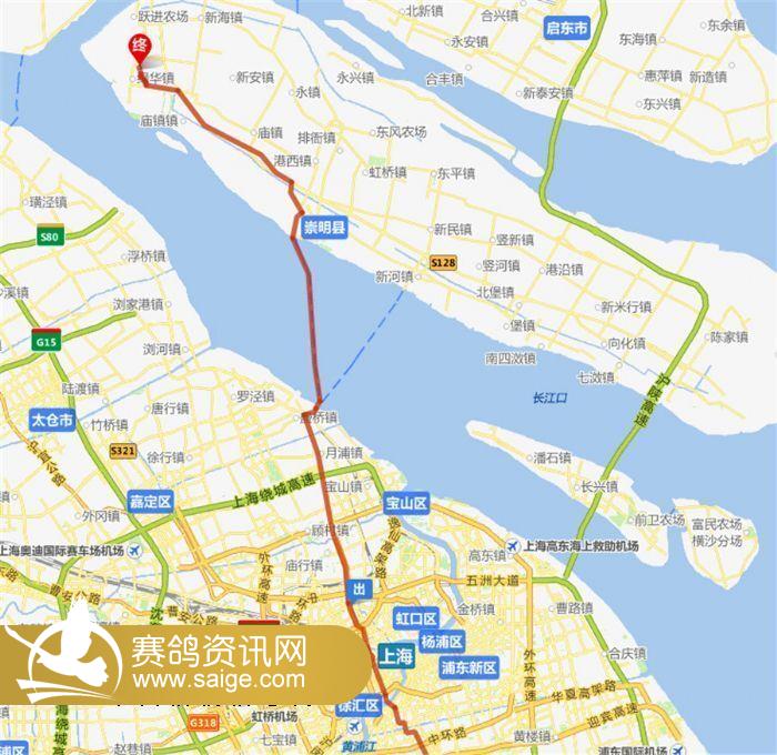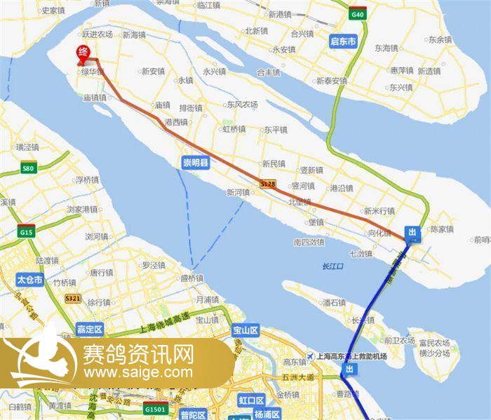 上海 到黃金海岸賽鴿俱樂部的水路交通地圖