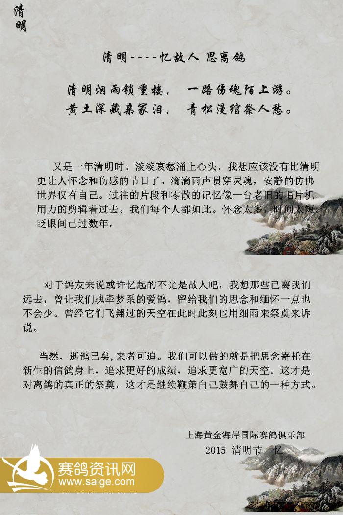上海黃金海岸清明專題---憶故人思離鴿(文字信息)