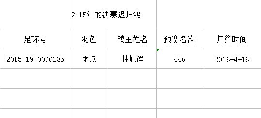 廣州浩羽(黃埔)公棚2015年的決賽遲歸鴿
